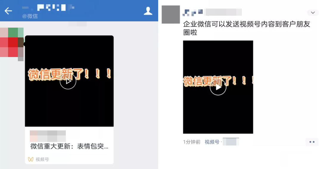 用户可以在企业微信里接收到别人分享的视频号内容,还可以借助群发助手再次分享给个人或客户群,甚至能一键发表到客户朋友圈。