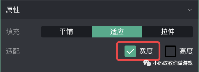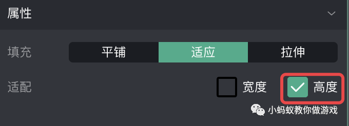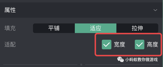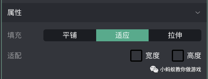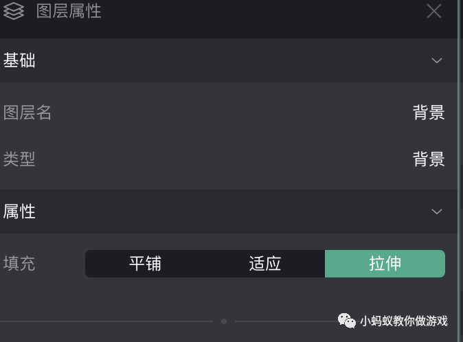 在微信小游戏制作工具中,只要你设置了一张背景图片,就必须要在三种填充类型中选择一种。