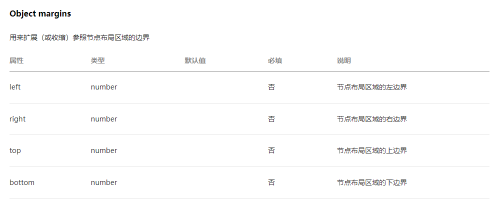 官方文档解释:指定页面显示区域作为参照区域之一,使用margins来扩展(或收缩)参照节点布局区域的边界。