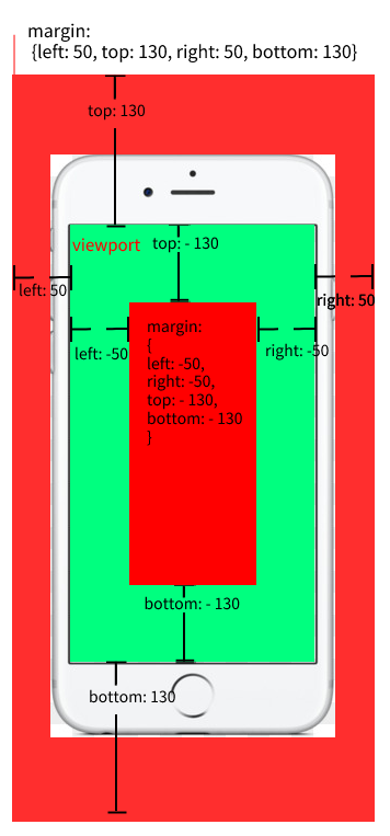 2.top / bottom 正值: 相对于视口的margins设置如下所示。top,bottom都为正值的处理。