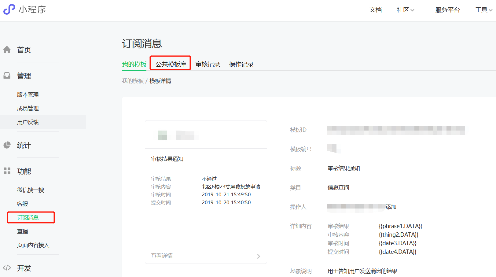 var tmplIds = ['复制你的templId进来']//审核通过通知权限