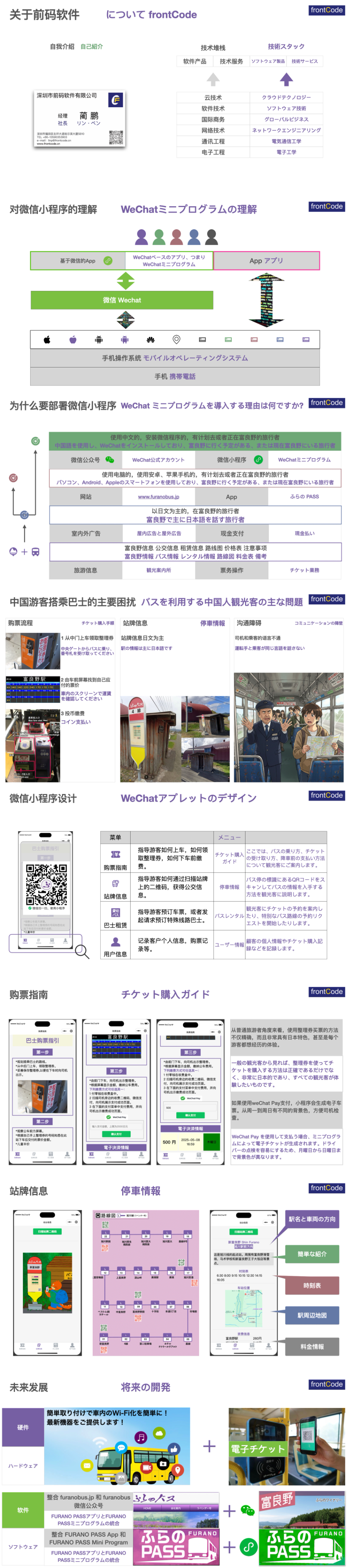 赛题简介:本次比赛要求参赛团队为富良野巴士公司设计一款微信小程序,提供电子车票的便捷购买与快速核验功能,确保票务信息安全、防伪且一次性使用,同时满足有效期内退款需求。此外,小程序需整合站点地图、导航、到站时间预估等交通资讯,并针对中国游客需求提供更丰富的本地化服务,提升整体出行体验。方案还应结合微信生态,探索会员制、景区联动等创新业务模式,助力巴士公司拓展面向中国旅客的增量渠道。