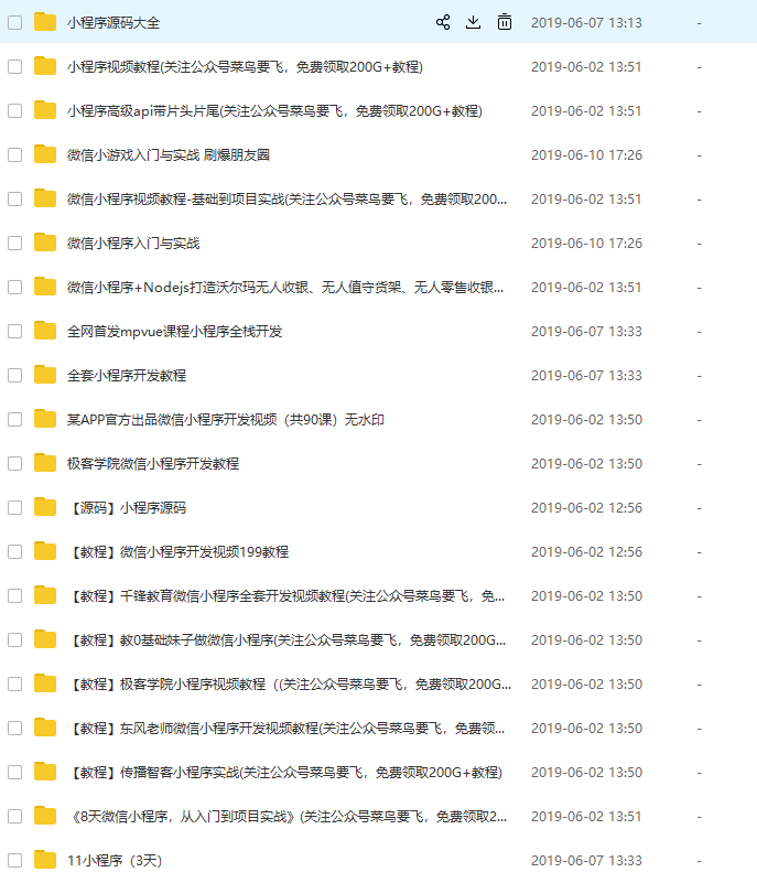 闲来无事收集并整理了十几套小程序的视频教程和几百个小程序源码分享给大家,用于帮助大家更好地学习小程序,如果链接失效了可以给我留言。