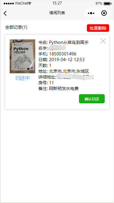 一个图书管理微信小程序