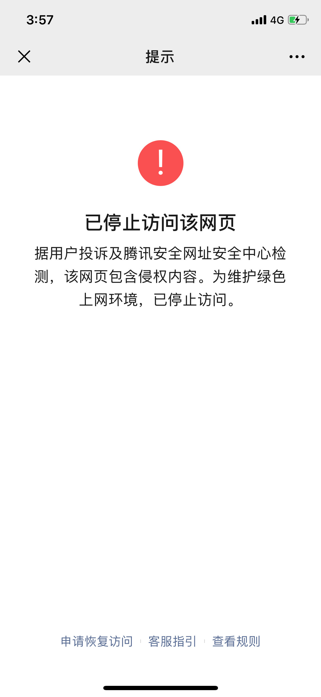 被微信拦截访问的原因很多,有被用户投诉,有其他原因,具体可以参考
