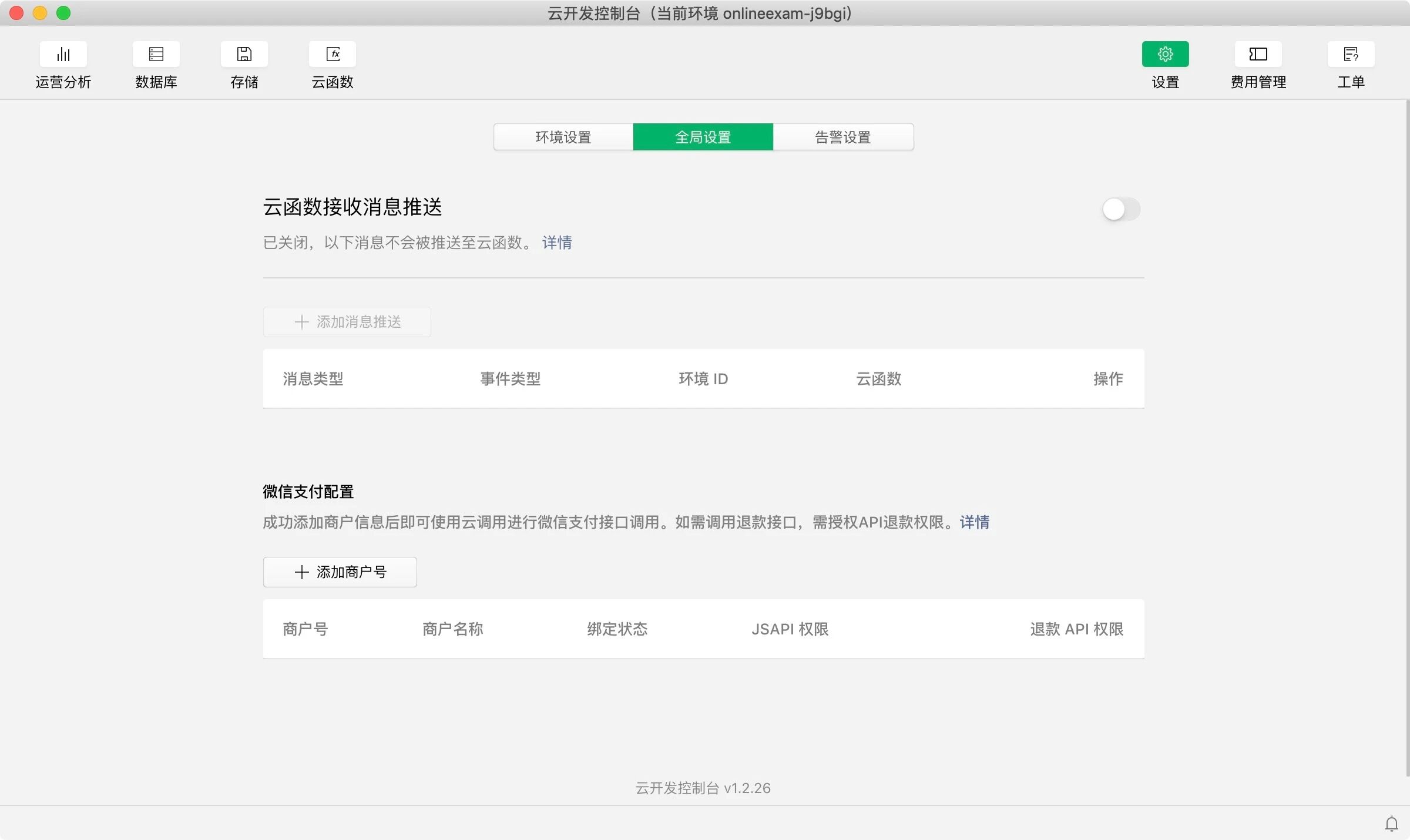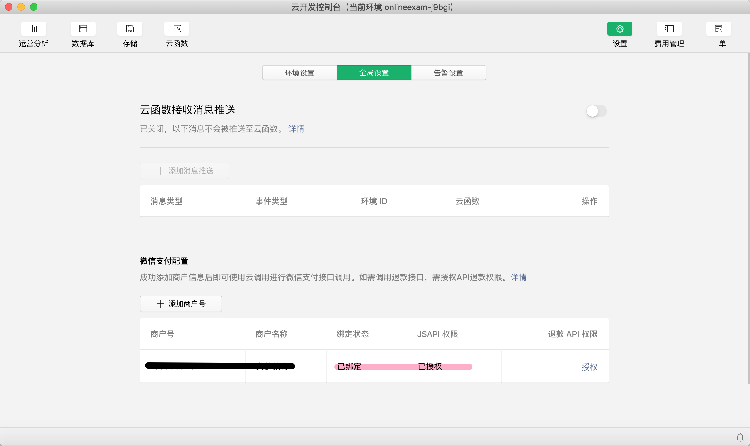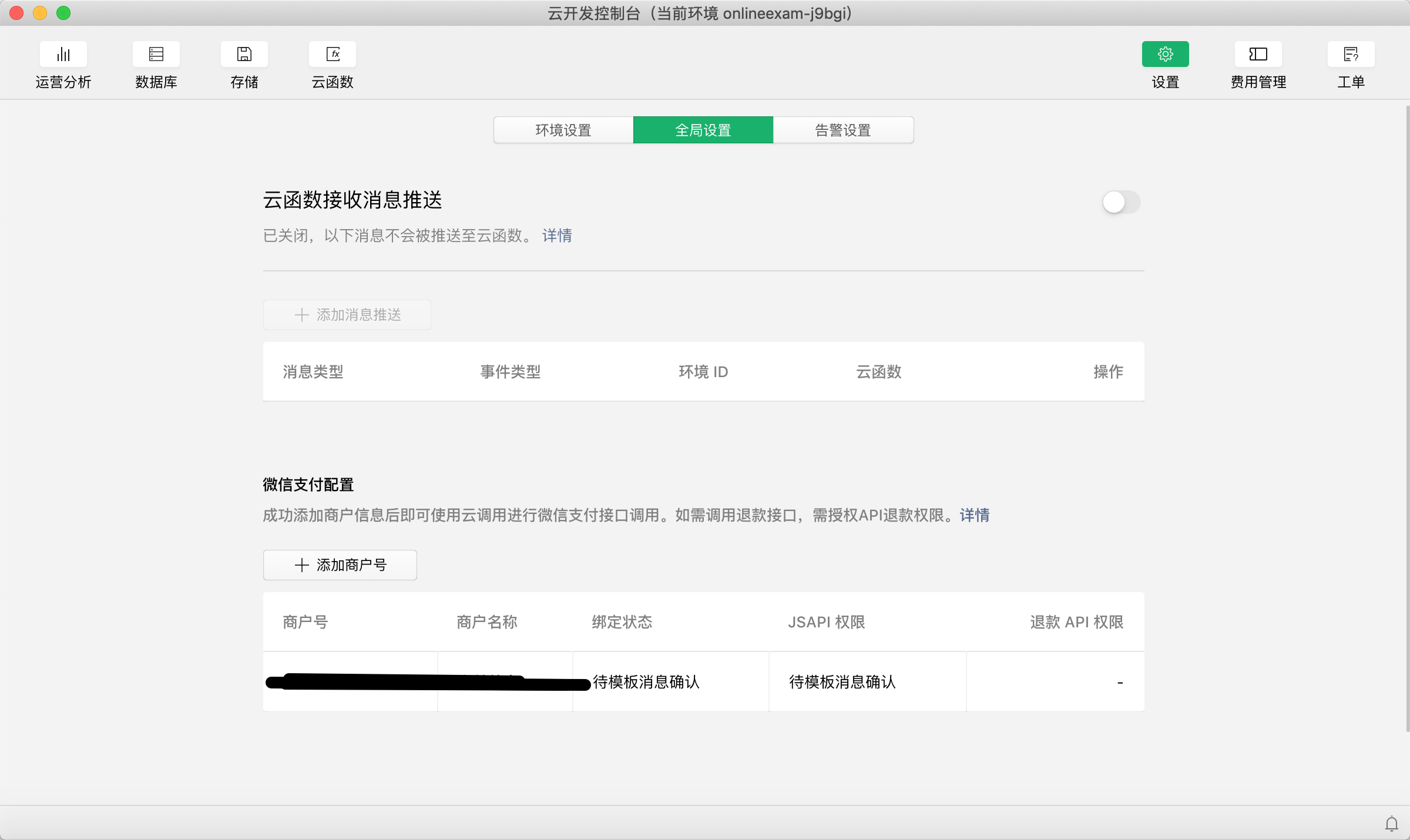 二、在云开发控制台、设置一栏目里面,找到全局设置