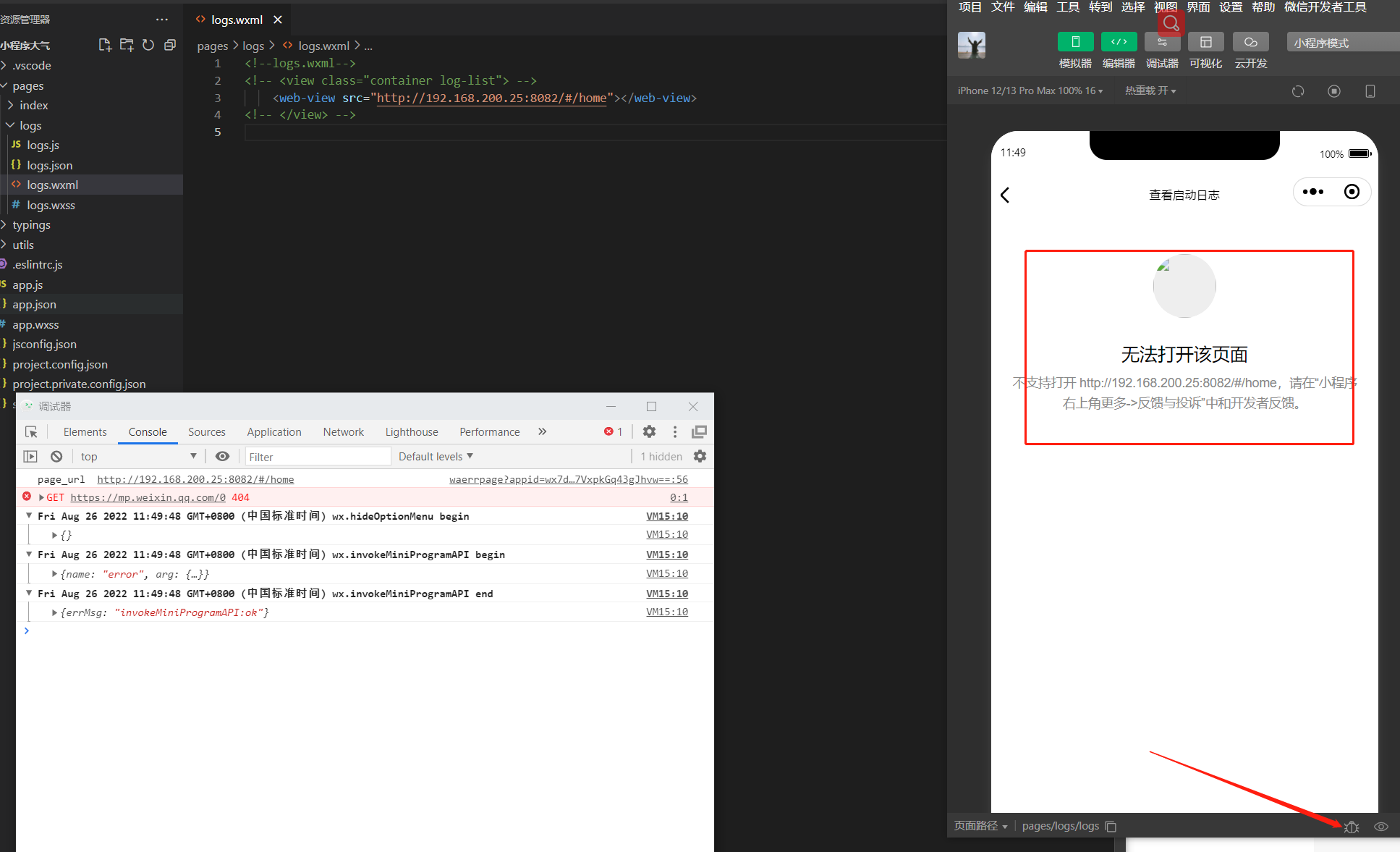 我点了调试按钮 web-view里面的内容还是显示不出来 192是我本机的另一个项目