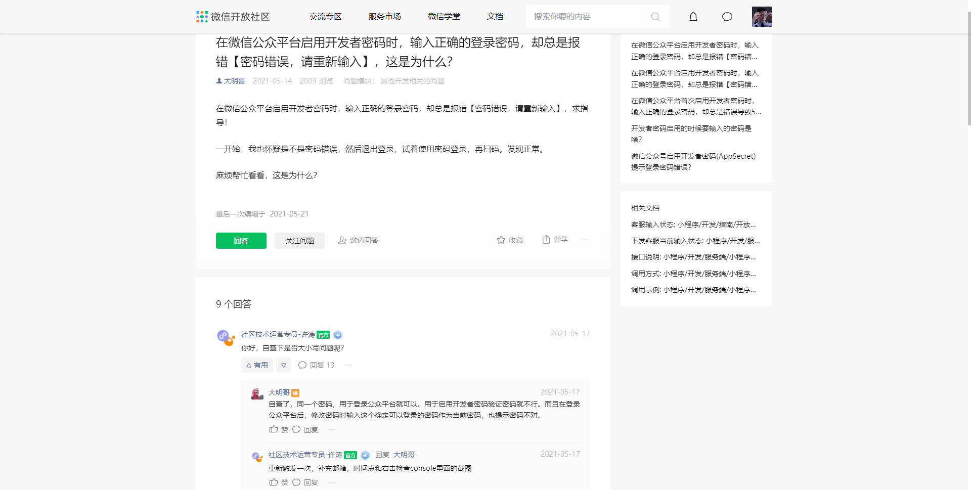 在微信公众平台启用开发者密码时,输入正确的登录密码,却总是报错【密码错误,请重新输入】,这是为什么? | 微信开放社区 (qq.com)
