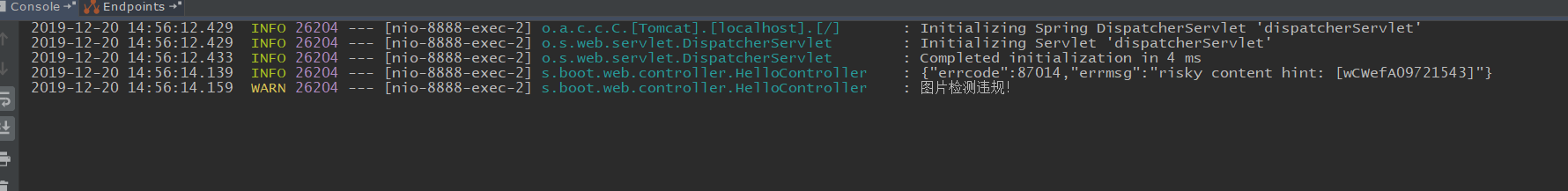 注意上面的 accessToken 写上自己的就行。来看一下一个违规图片的调用结果: