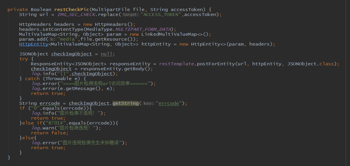 微信小程序开发中,使用 RestTemplate 访问 security.imgSecCheck来判断图片是否违规,网上试了好多办法,终于解决了!果然世上没有过不去的坎!