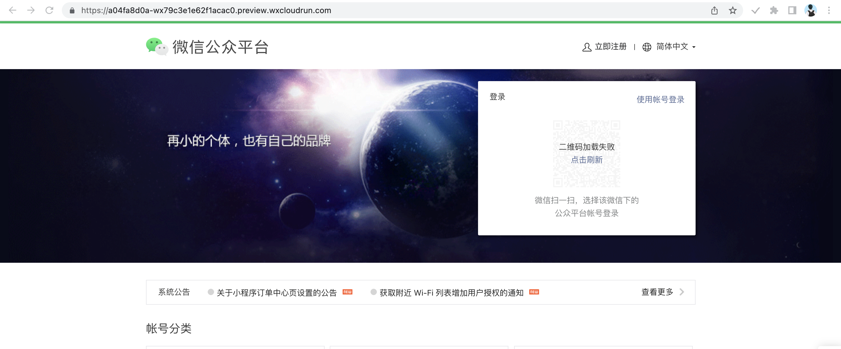https://xxx-wxxxx.preview.wxcloudrun.com/cgi-bin/scanloginqrcode?action=ask
