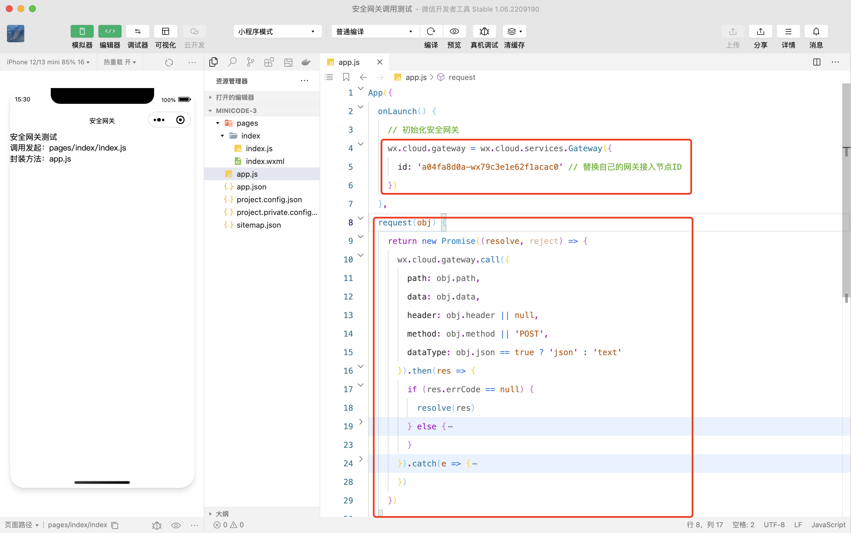 目前可以在微信小程序中使用安全网关,使用步骤如下:
