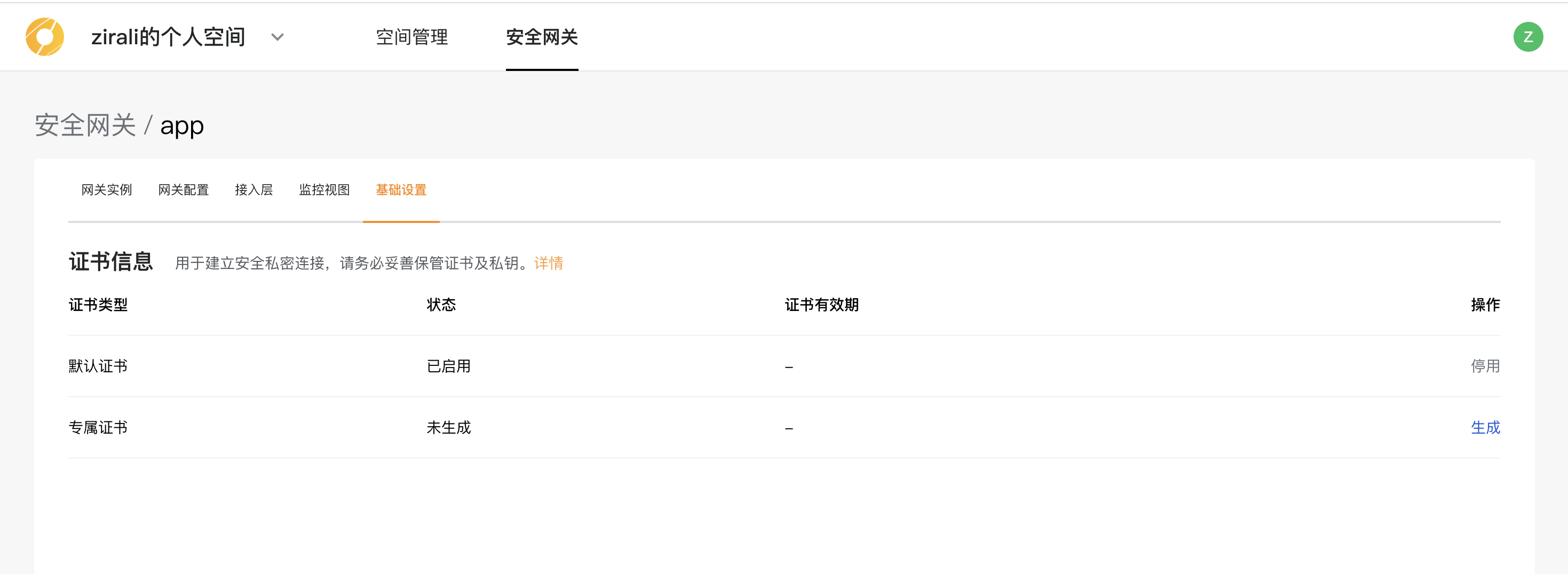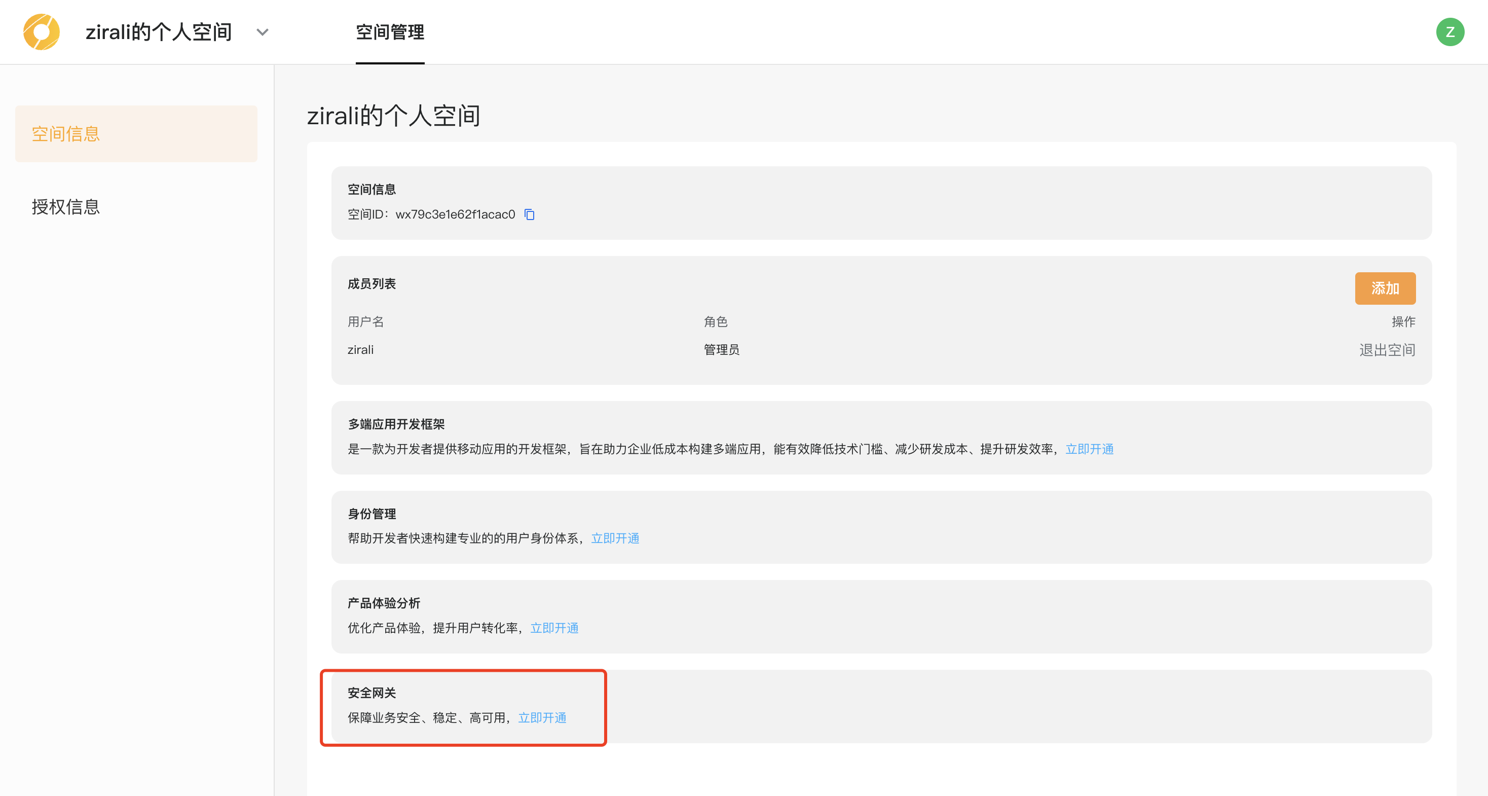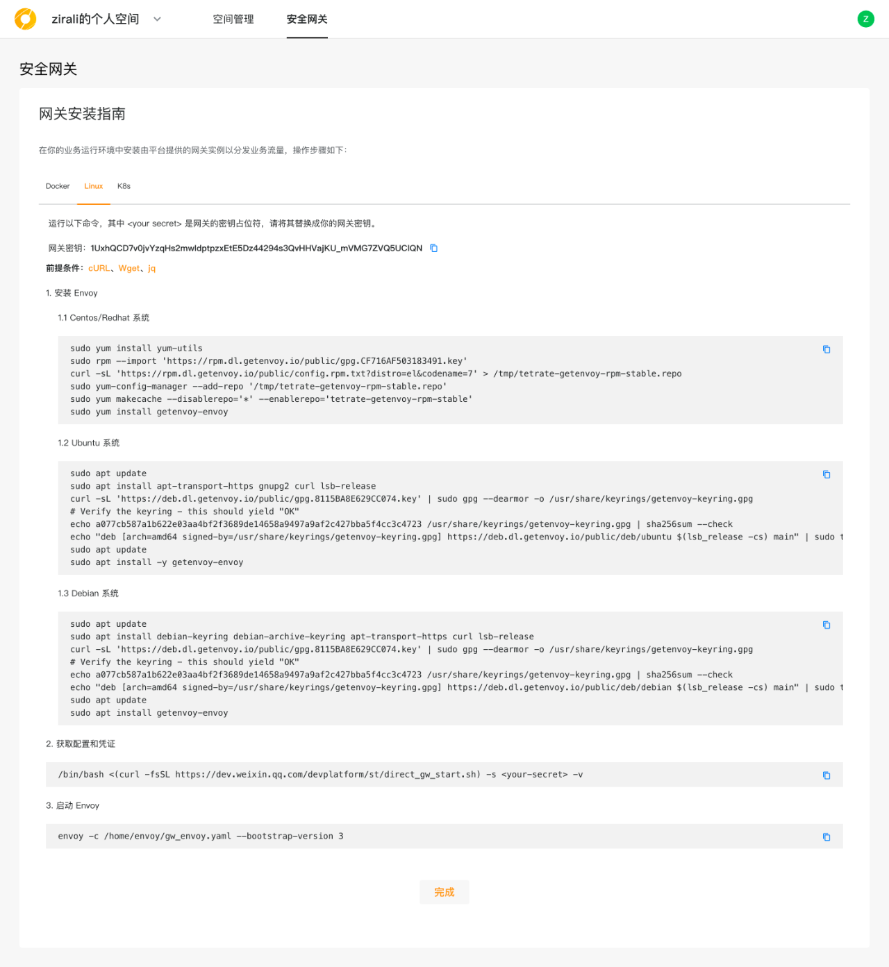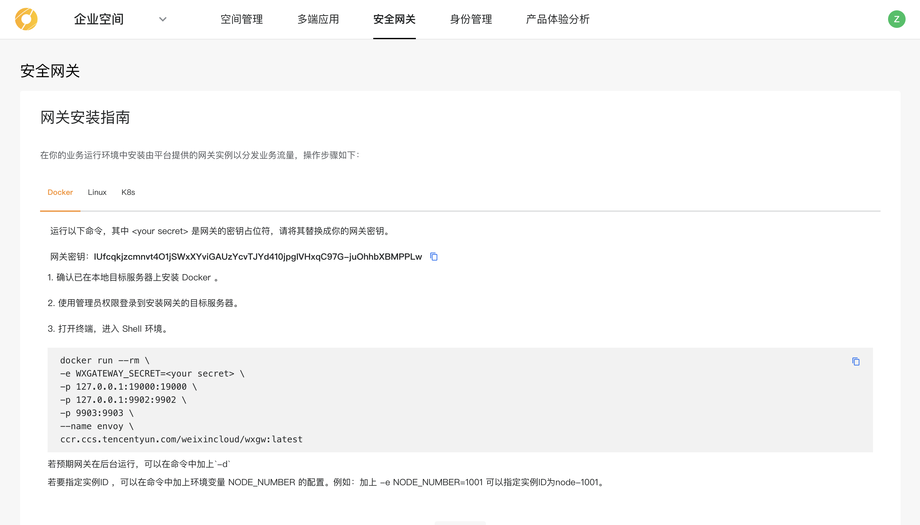 页面会自动刷新,点击上方菜单栏「安全网关」,显示下述页面,开通流程完成。