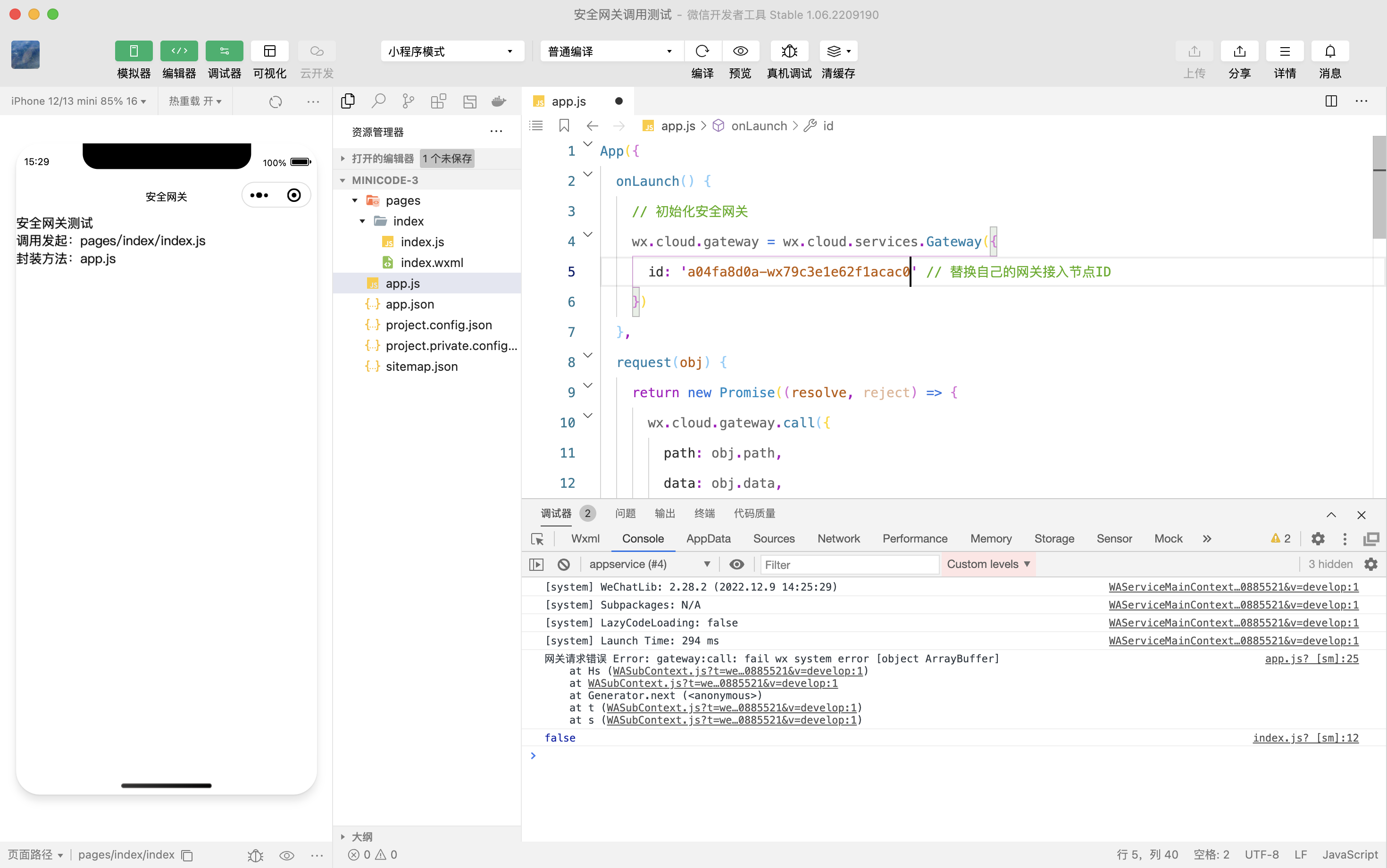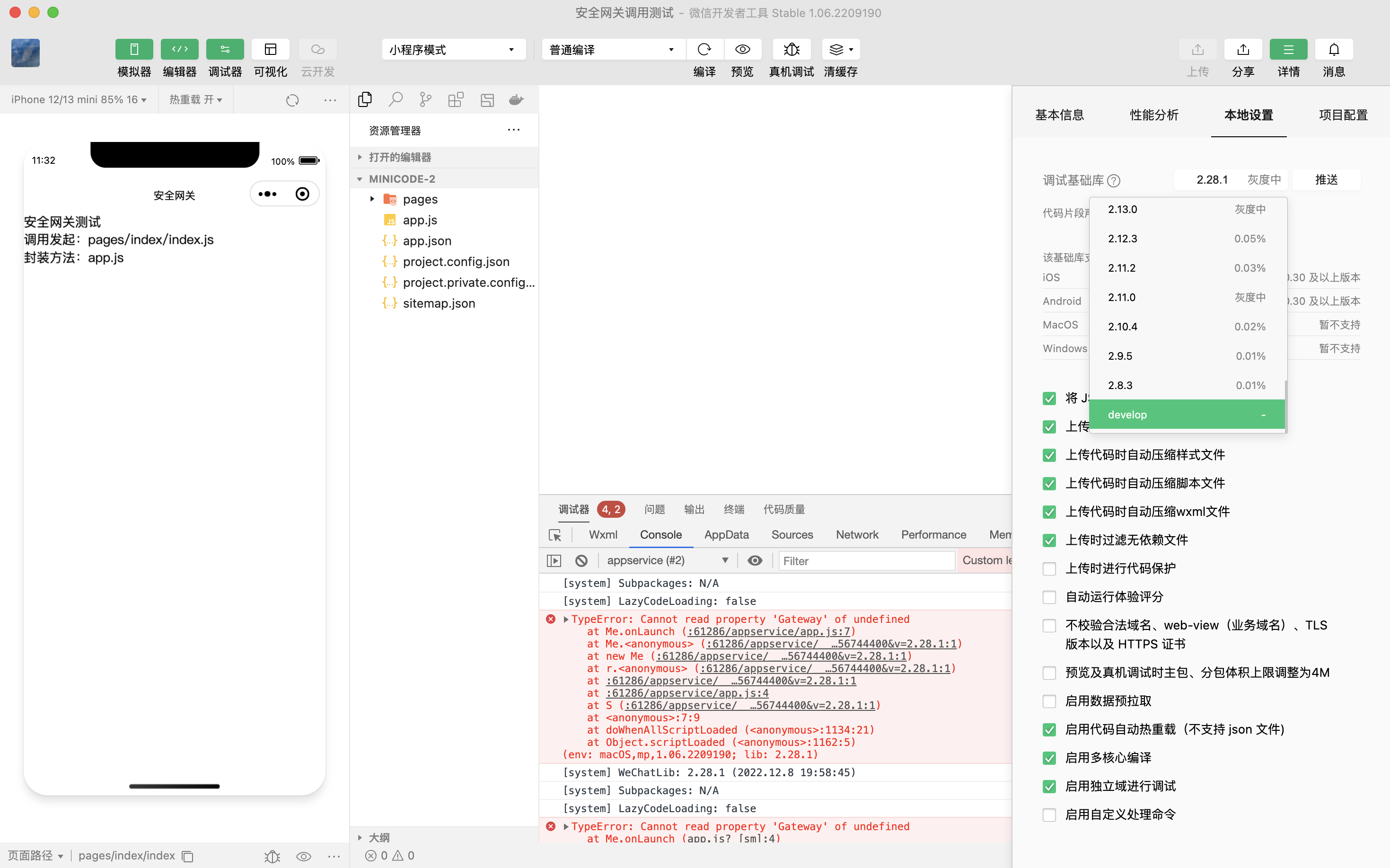 公测期间,IDE内调试开发使用的是 develop 基础库,但是线上不会存在这种基础库,因此网关的调用代码需要跟随你的应用代码包一起上传。