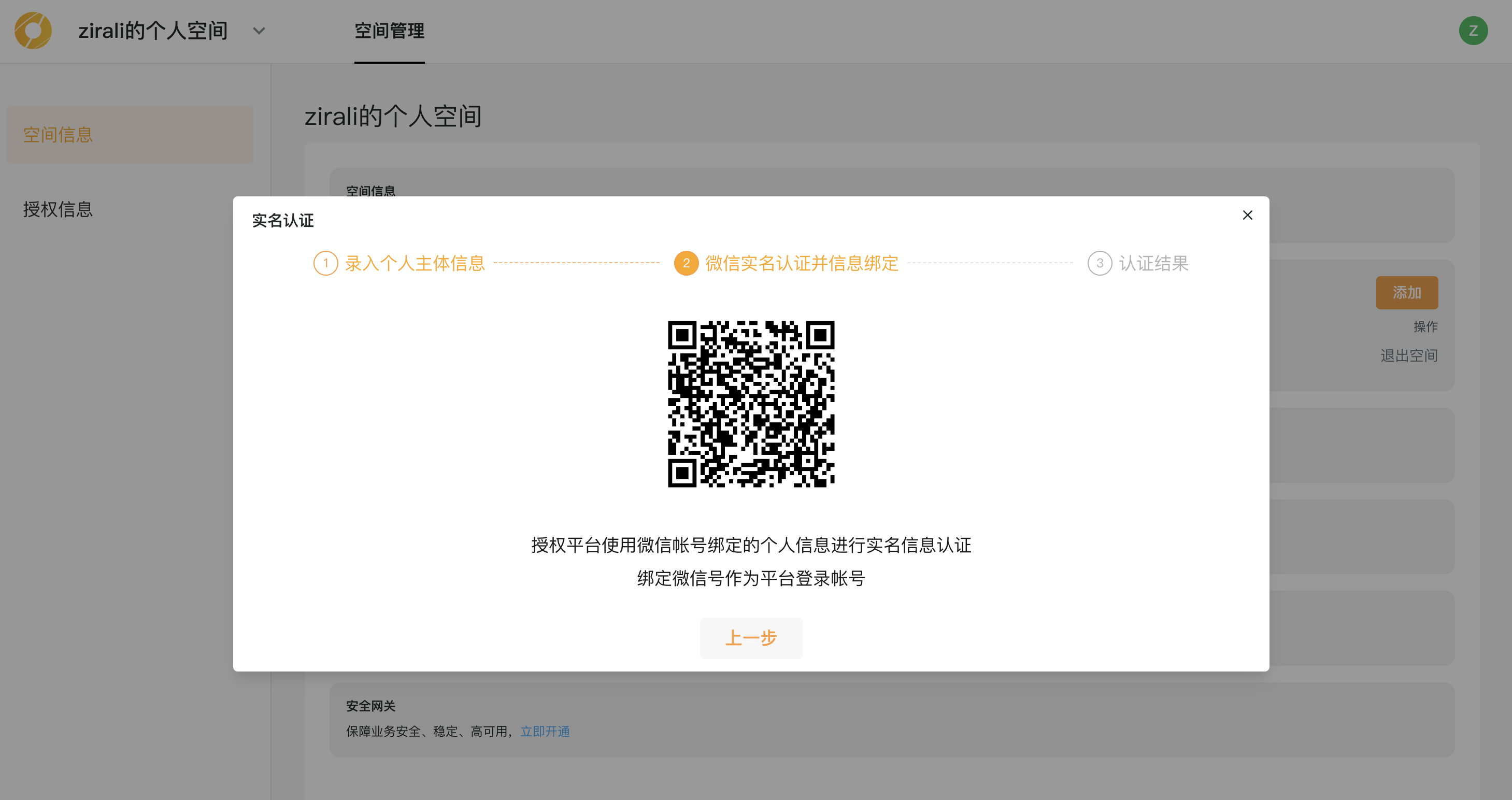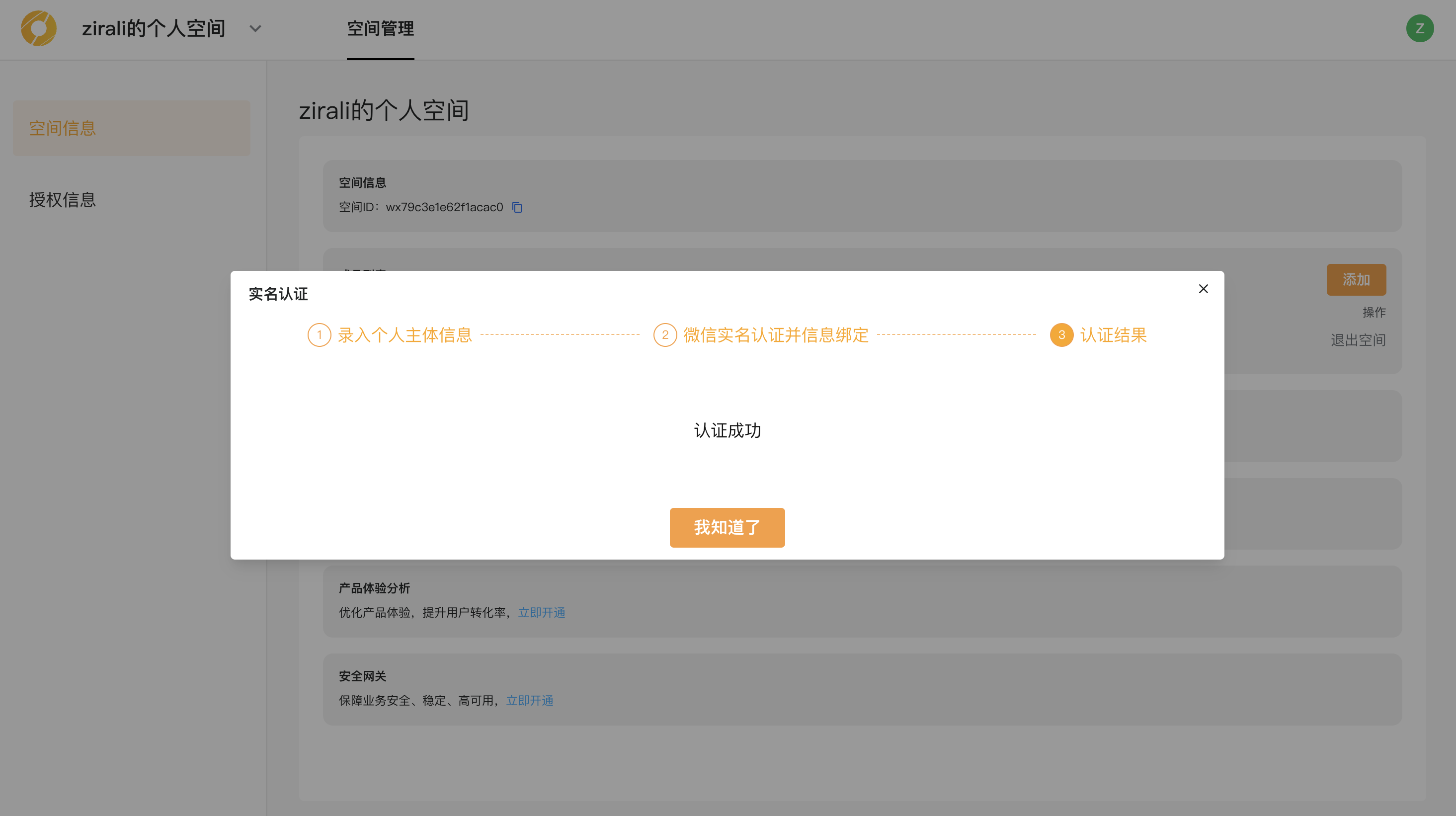 验证完成后会自动提示如下,此时就完成了实名认证流程。
