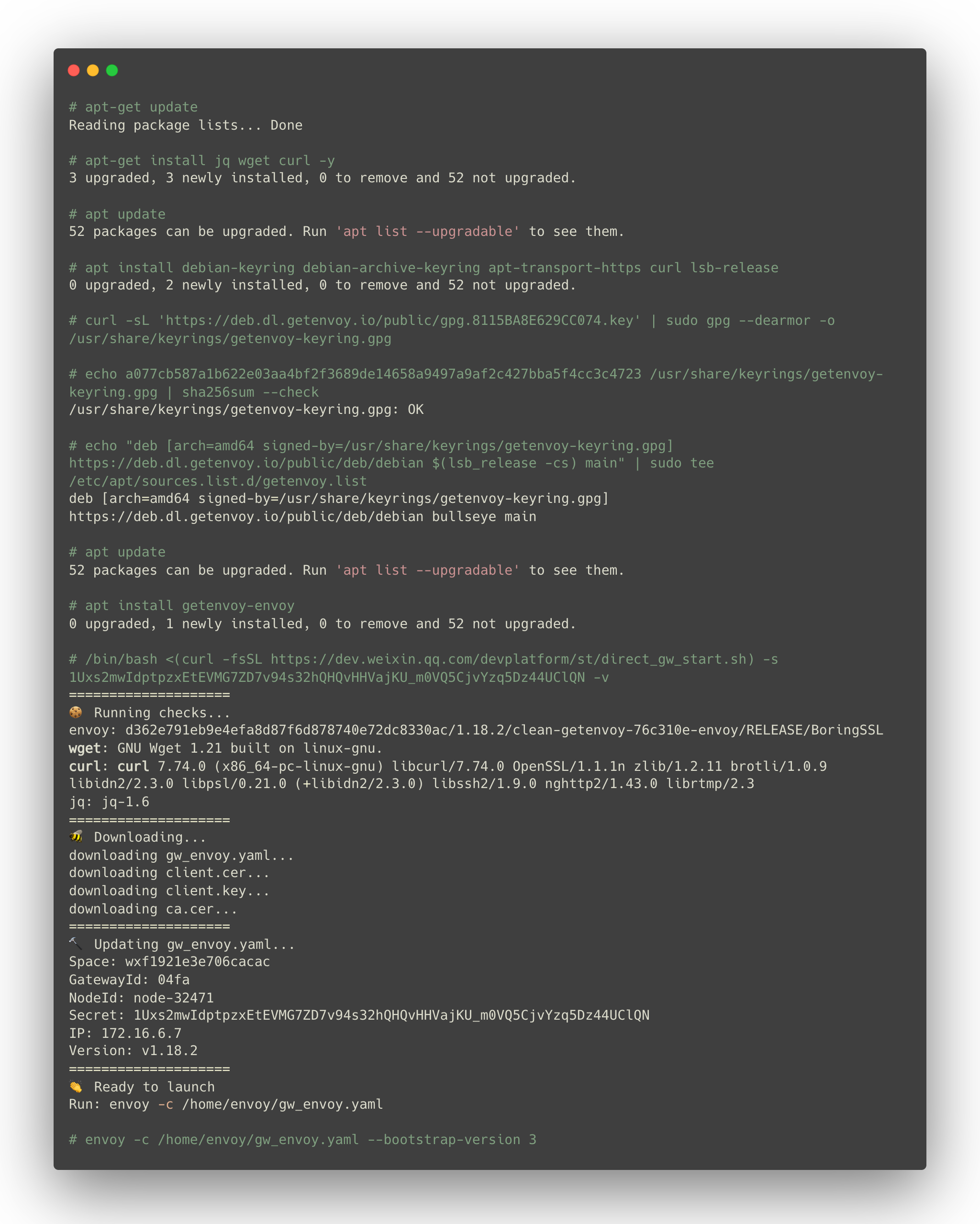 网关实例是一个经过处理过的envoy网关,主要作用就是接收微信侧发过来的请求,并按照自己设置做路由分发等流量管理。所以网关实例运行的服务器或者容器服务,应该具备以下几个条件: