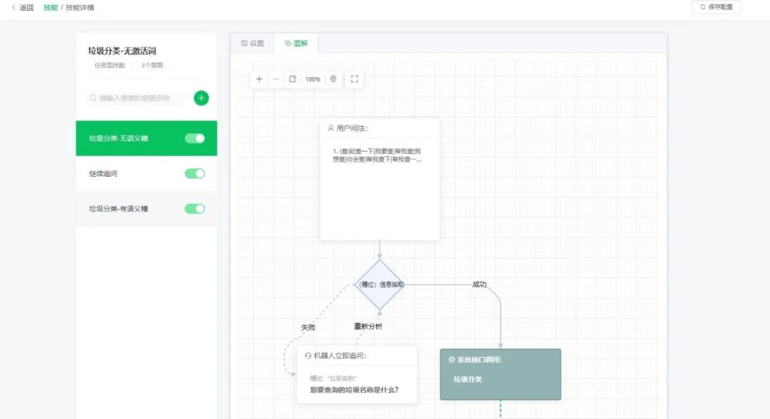 针对高级技能,对话平台V2.0上新了「图解」功能,对高级技能意图的配置结构进行了可视化的呈现。