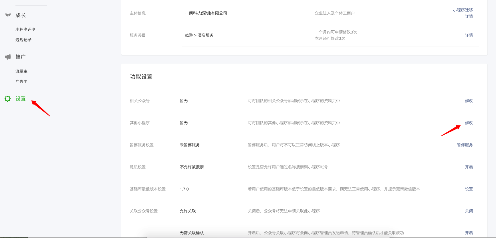 二、进入设置里的其它小程序修改页面。