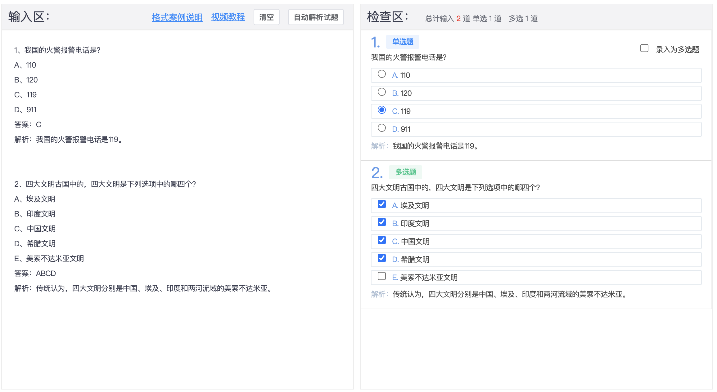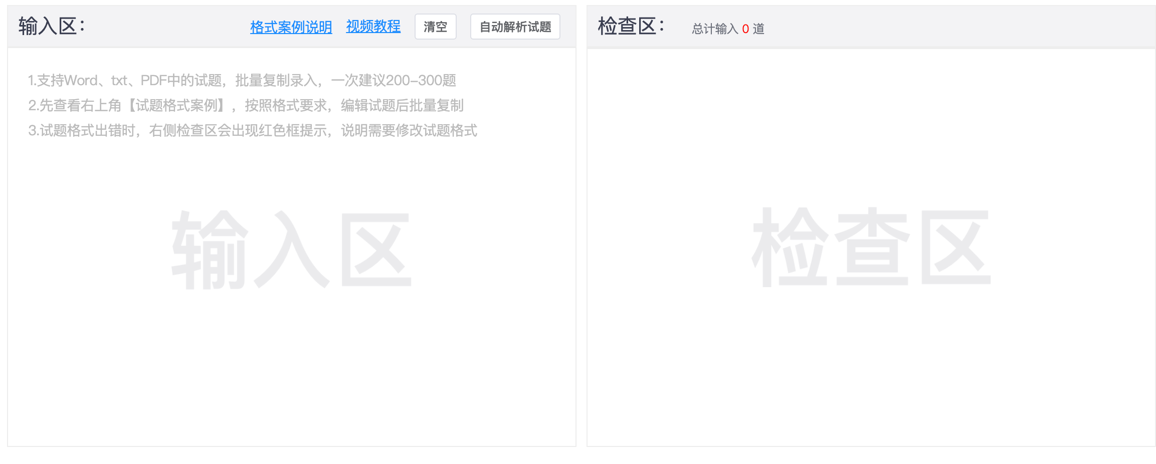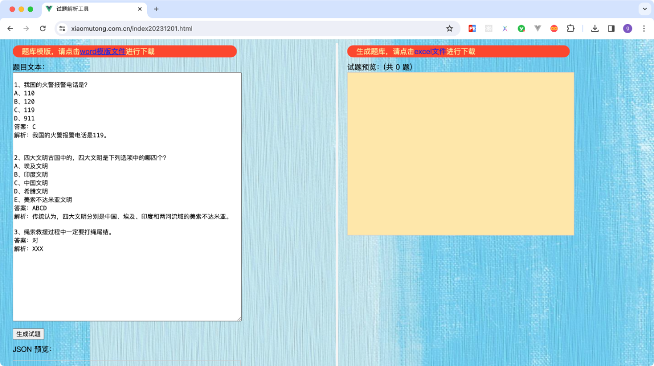 在左边复制word文档中的内容,可以在右侧可视化具体的每个题目个信息