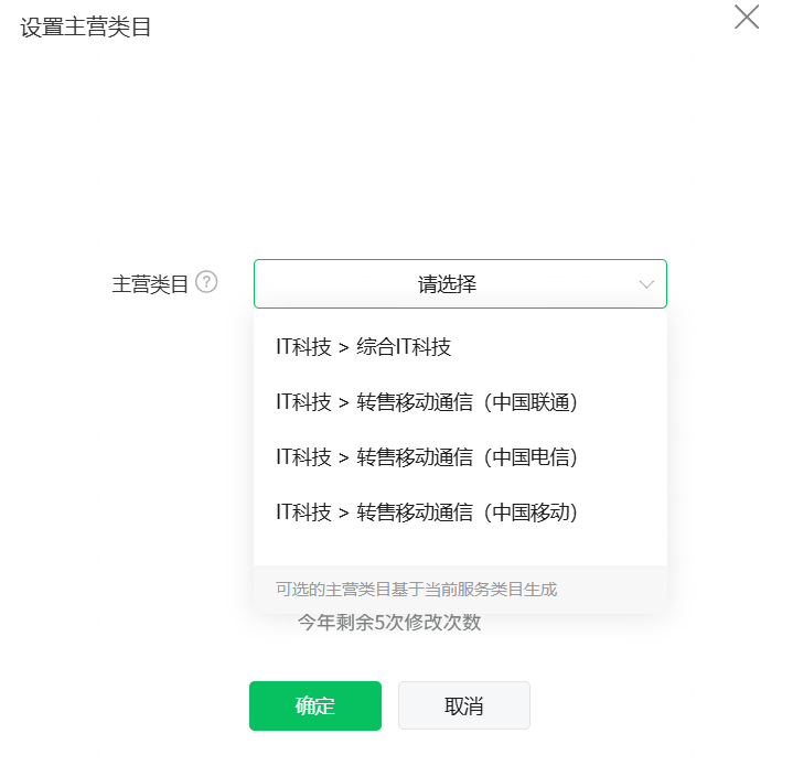 请问主营类目选哪个?公司三大运营商都有合作关系,小程序也会展示三大运营商相关的号码信息