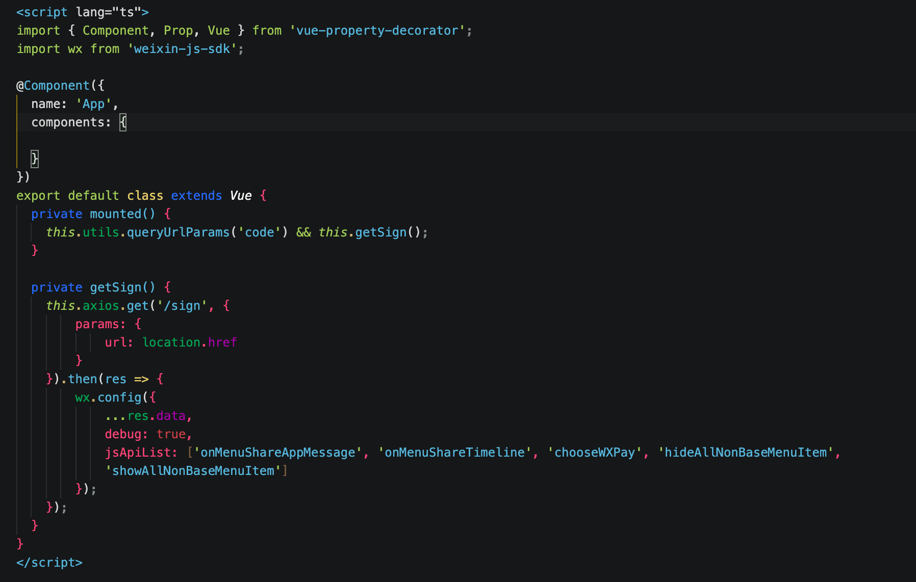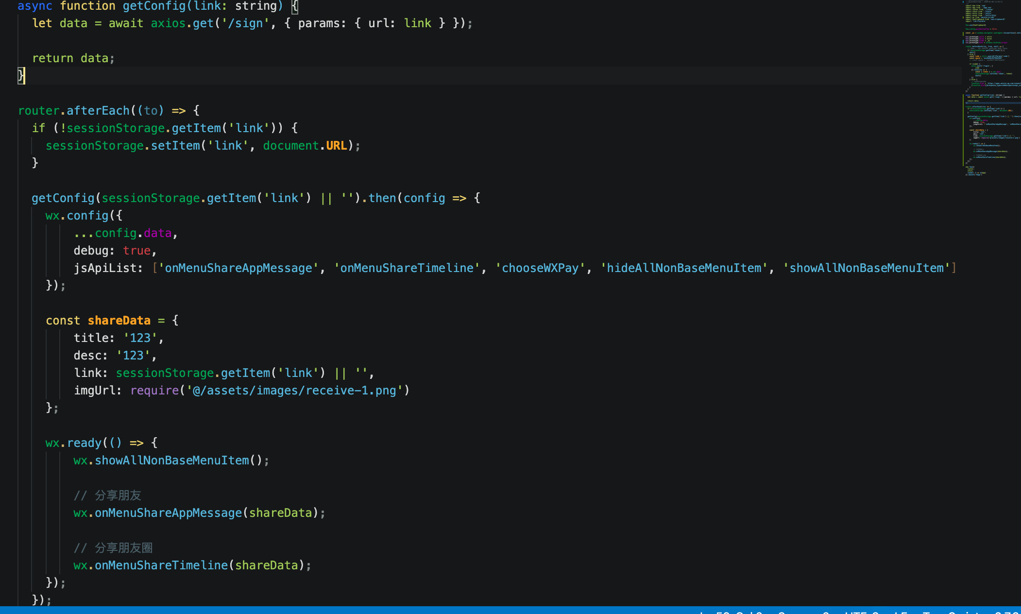 需要在vuerouter的导航守卫处加上afterEnter之后的重新签名和重新设置分享配置的代码