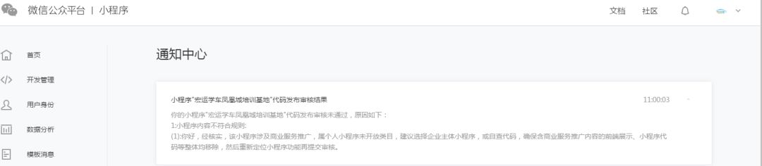 你好,经核实,该小程序涉及商业服务推广,属个人小程序未开放类目,建议选择企业主体小程序,或自查代码,确保含商业服务推广内容的前端展示、小程序代码等整体均移除,然后重新定位小程序功能再提交审核。