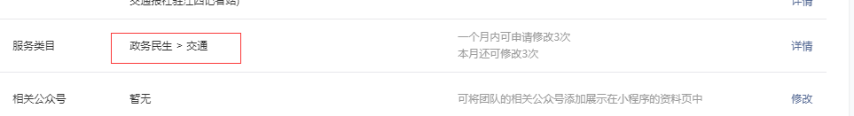在微信公众平台小程序设置的账号中,小程序的服务类目为: 政务民生