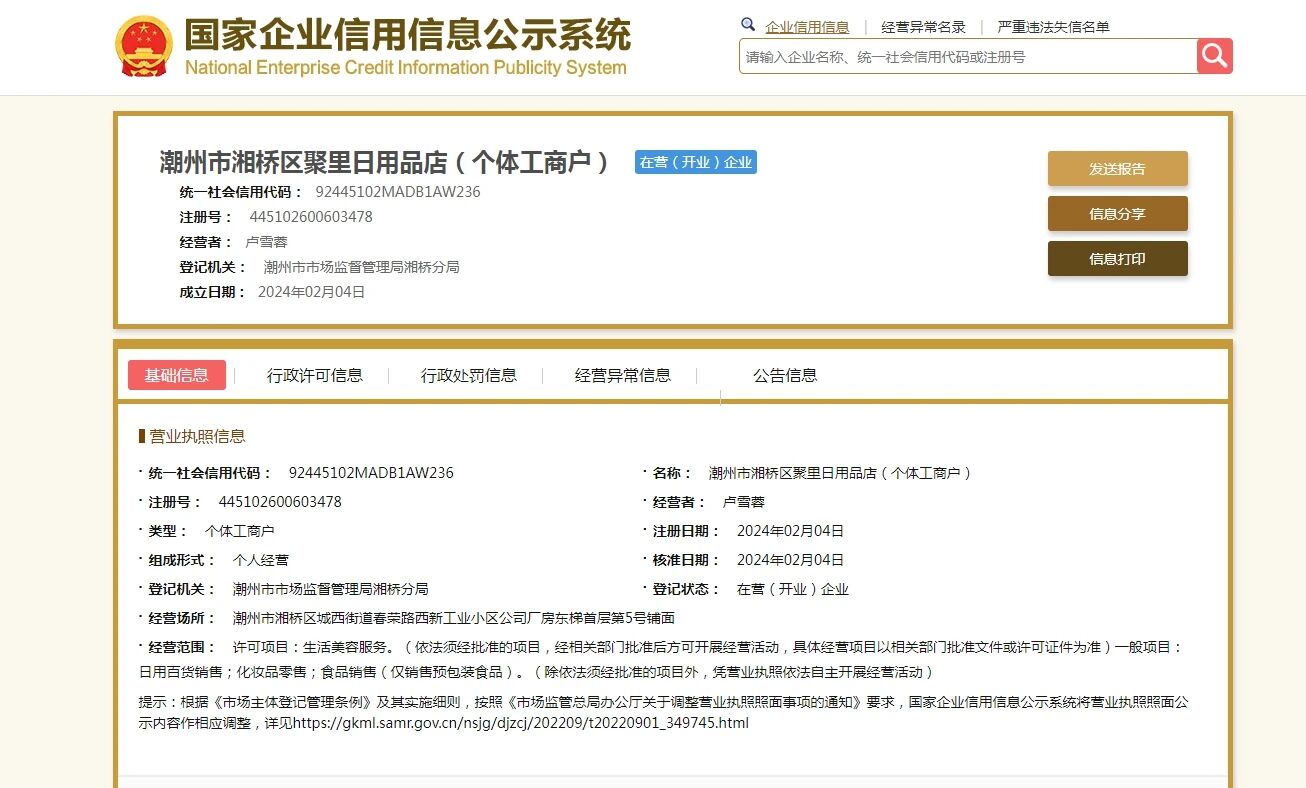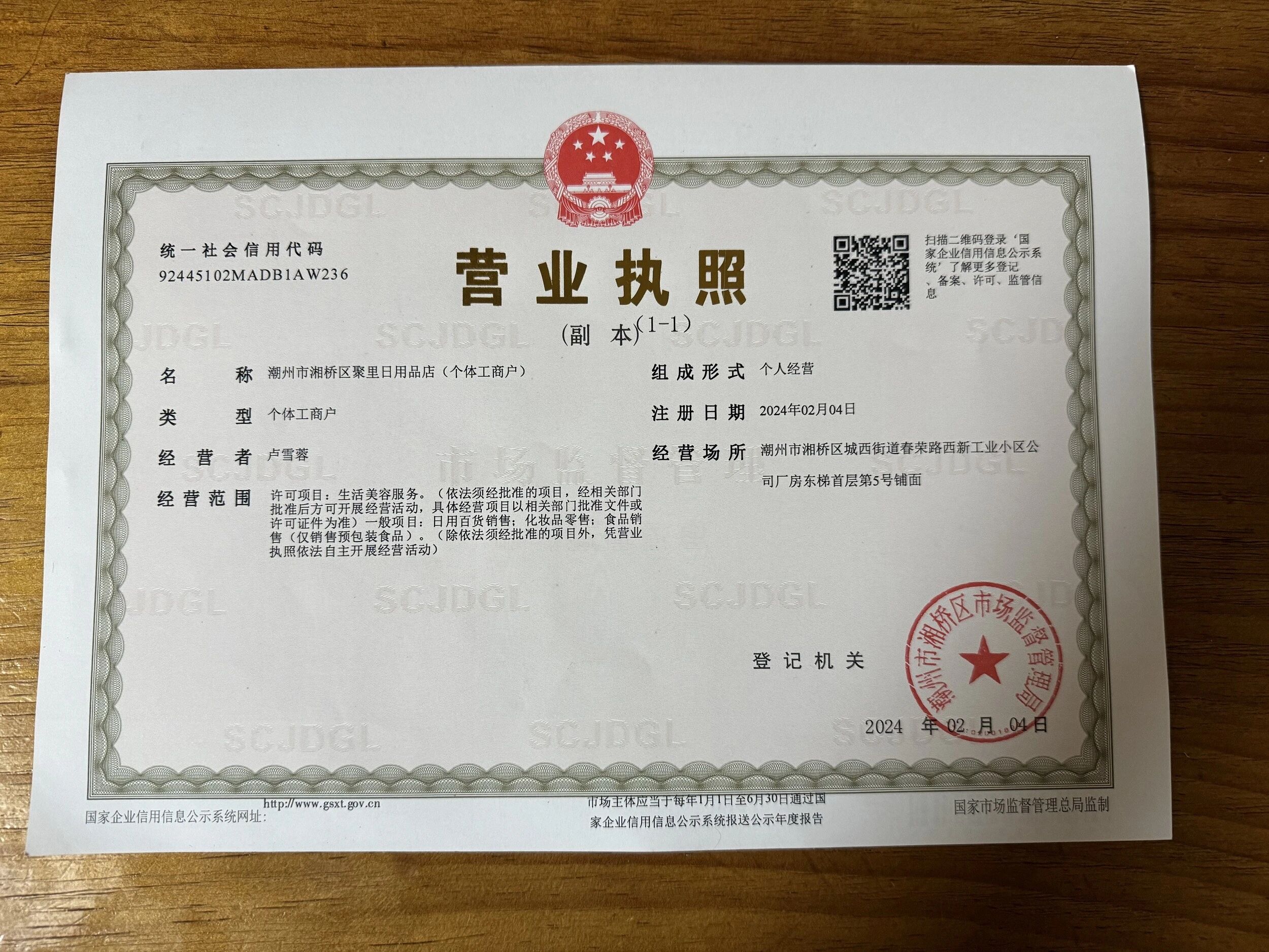 主体名称:潮州市湘桥区聚里日用品店(个体工商户)