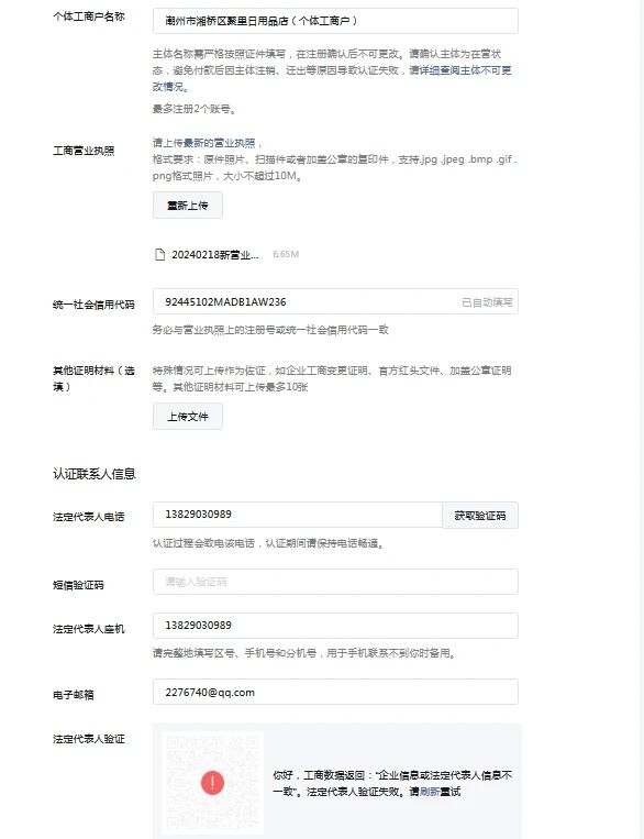 营业执照注册已满1个月了,国家企业信用信息公示系统内可以查询到,一直提示企业信息或法定代表人信息不一致