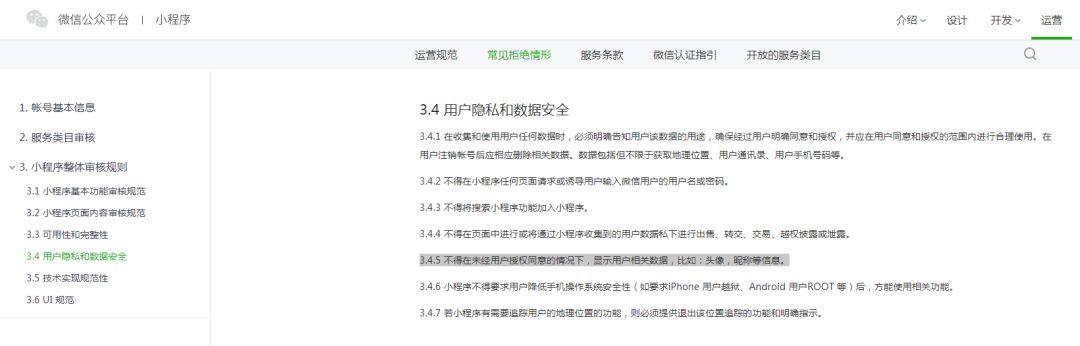 这是否违反小程序关于【用户隐私和数据安全】的规定?