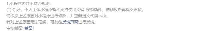 之前版本的小程序中包含视频插件,审核未通过,现已删除相关内容和插件再次提交审核多次仍未通过,用户较多比较着急,麻烦相关工作人员帮忙核实一下,的确已经没有视频插件了。
