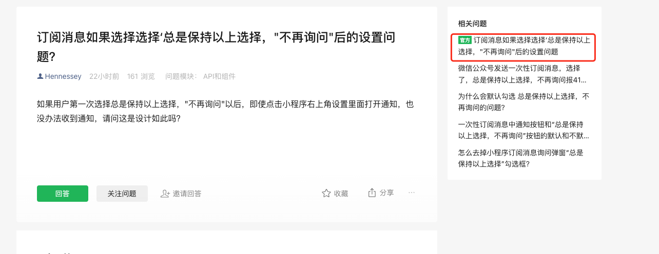如果用户第一次选择总是保持以上选择,"不再询问"以后,即使点击小程序右上角设置里面打开通知,也没办法收到通知,请问这是设计如此吗?