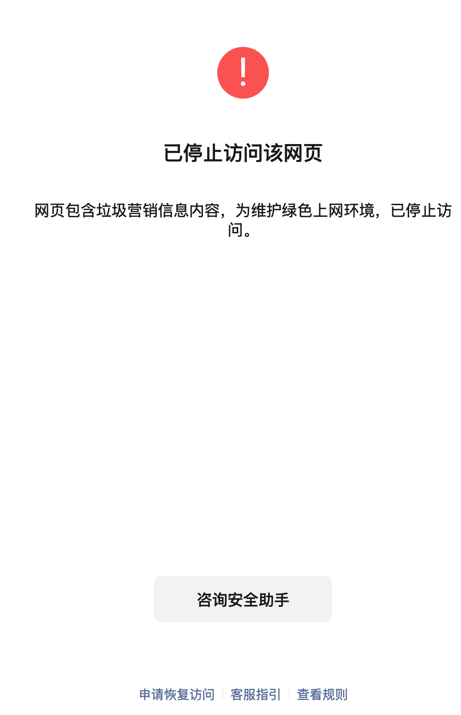 你好,经核实,该域名涉及贷款类内容,请提供与域名相关的《营业执照》以及业务资质证件,发送至邮件<moment@tencent.com>提交恢复申请,请知悉。