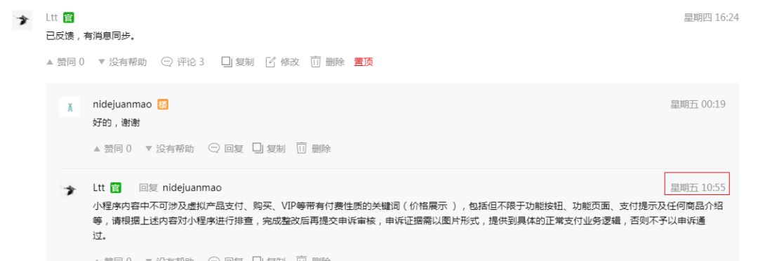 上图这个结论就是我反馈后,再次申诉该小程序的申诉结果。