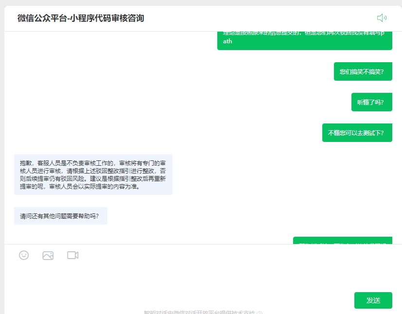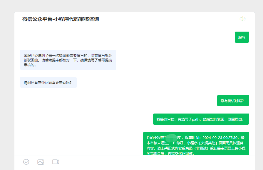 实际填写了path提交的,多次都打回这个理由,找您们客服反馈也不搭理,如果可以的话,投诉一下客服,两个小程序都反馈过,客服编号分别是:10269 ,10270