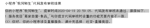 我的小程序有直播功能,商家自营+电商平台! 但是昨天给我的回复是涉及直播需要补充直播类目!