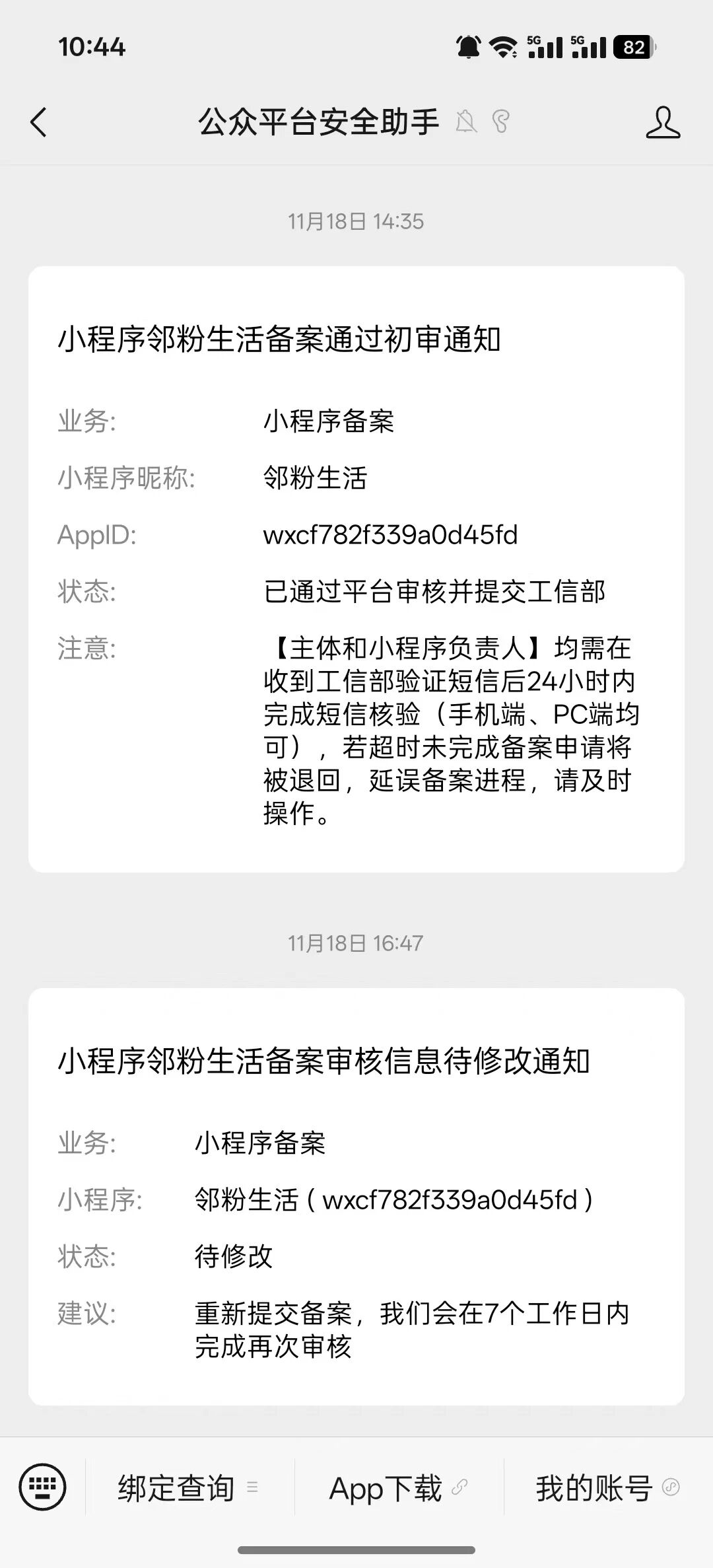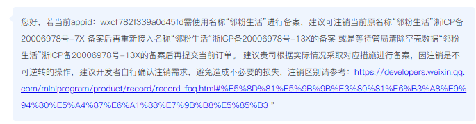 结果微信客服让我把现在在运营的这个小程序的备案注销接入同名小程序的备案信息。