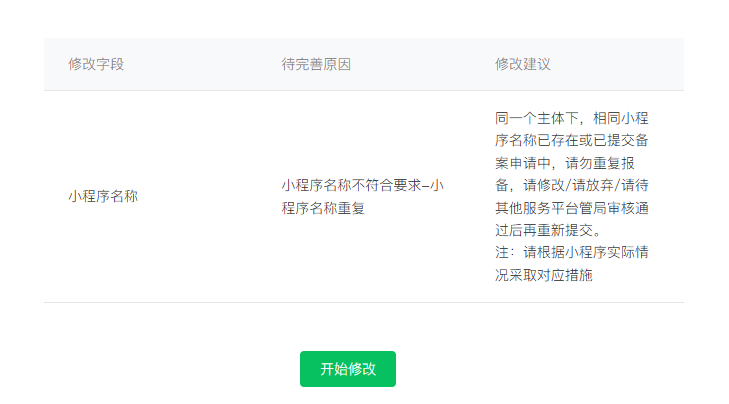 我们现在在运营的小程序因为重名的关系提交备案信息被驳回: