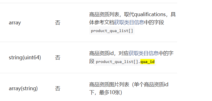 视频号商品上传 资质图片参数里的 qua_id 参数报错数据类型错误