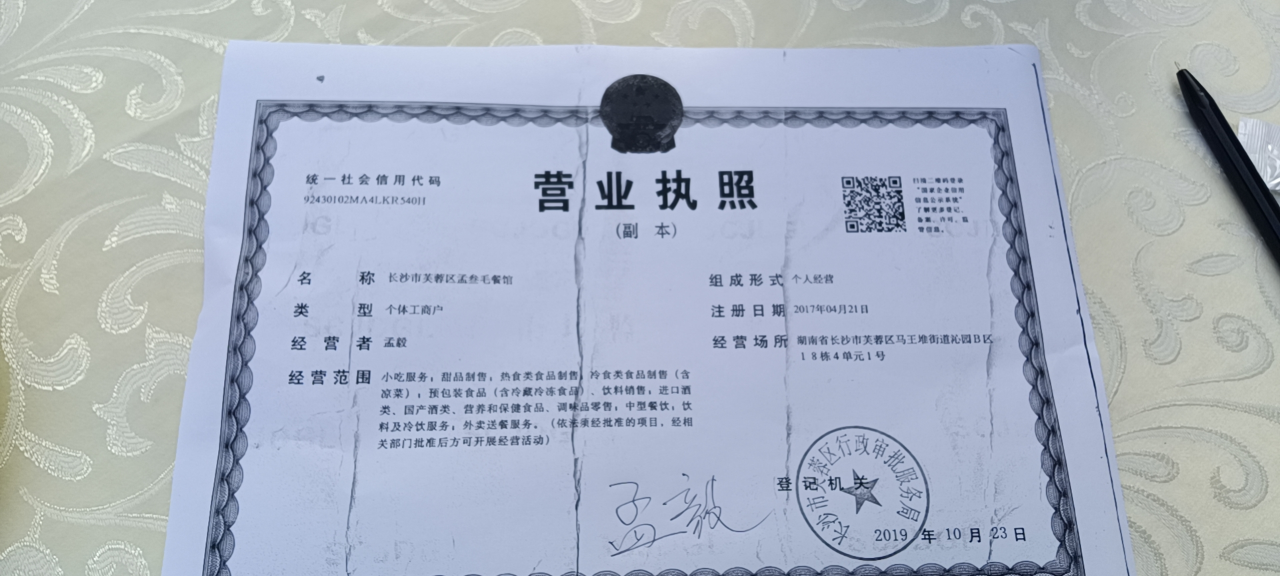 公司名称:长沙市芙蓉区孟叁毛餐馆