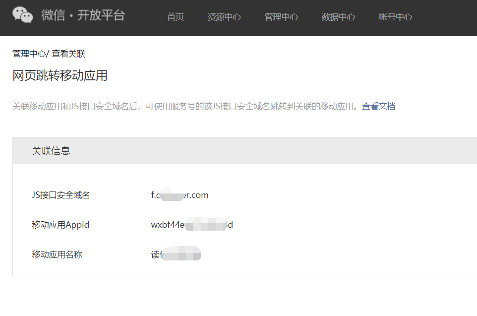 5)开放平台服务号设置“网页跳转移动应用”关联 OK