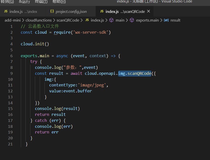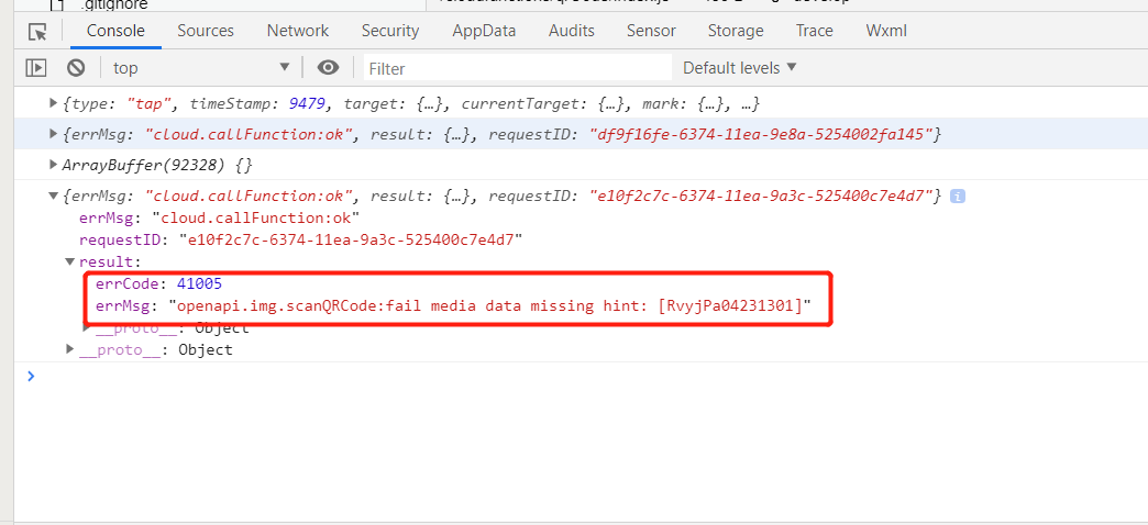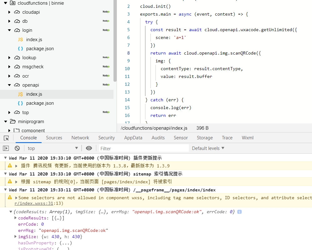 调用云函数openapi.img.scanQRCode失败