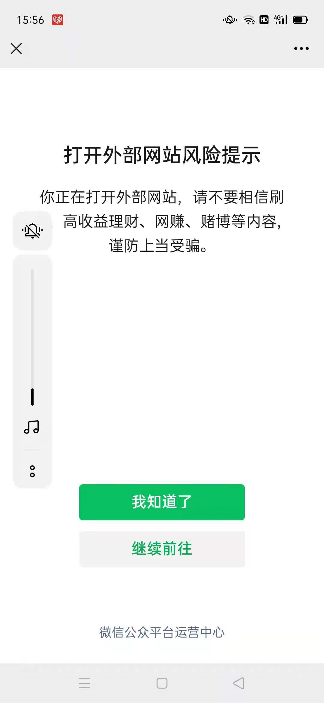 公众号点击导航链接出现:打开外部网站风险提示,什么原因,刚搭建好的系统,测试期间