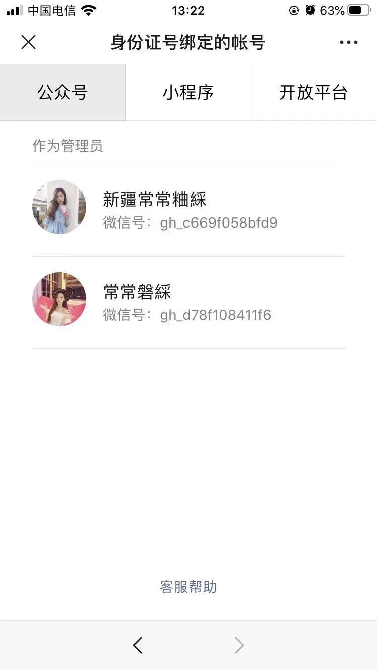 你好,请通过私信的方式发送给我的你的身份证号,并在帖子内容里补充(复制粘贴)注册的公众号的原始ID,微信关注关注平台安全助手可查询身份证绑定的帐号信息,可从那里复制粘贴公众号的帐号
