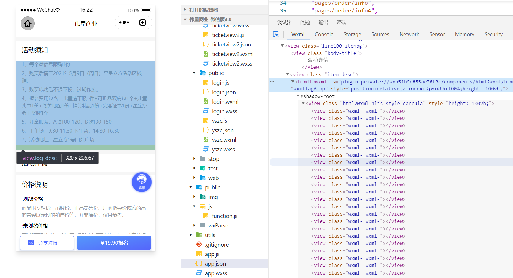 页面显示正常,wxml 面板显示错误?