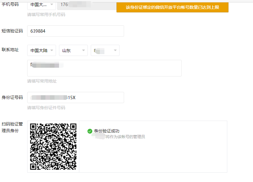 提示【该身份证绑定的微信开放平台数量以达到上限】但身份证未绑定过开放平台,请帮忙解决下 着急 !!!