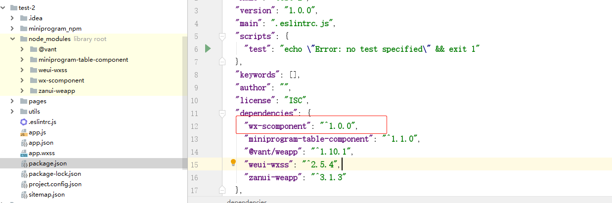 此时package.json的依赖中已有wx-scomponent