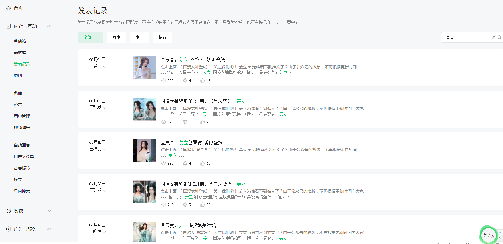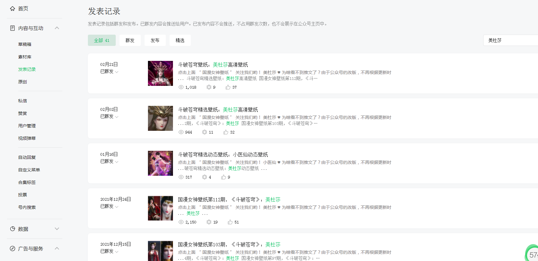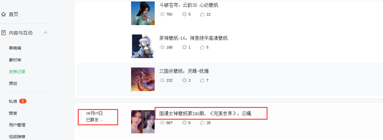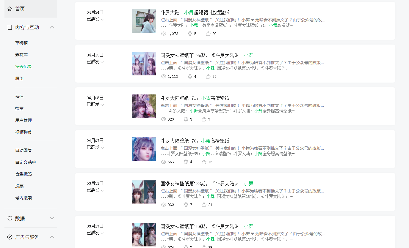 在公众号后台发表记录都可以查看的到,文章有发布