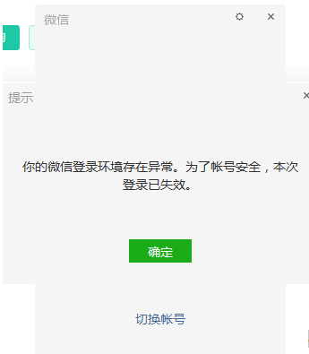 PC端微信登陆异常。提示环境登陆异常,本次登陆失效 请重新登陆