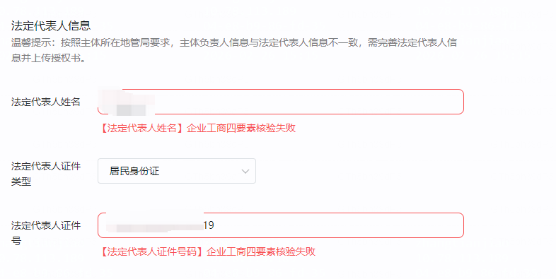 近期企业没有信息变更,也不是显示“工商数据比对不通过”,是显示工商四要素核验失败